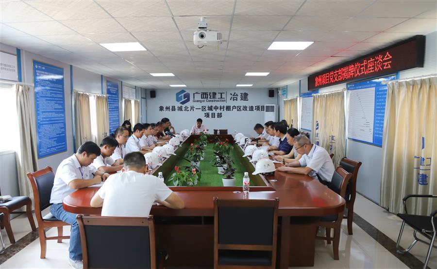公司安全監(jiān)管處、生產(chǎn)管理處、物資設(shè)備處、工會相關(guān)負(fù)責(zé)人,六分公司領(lǐng)導(dǎo)班子成員,象州工程項目部黨員、職工共同見證了項目黨支部的成立。