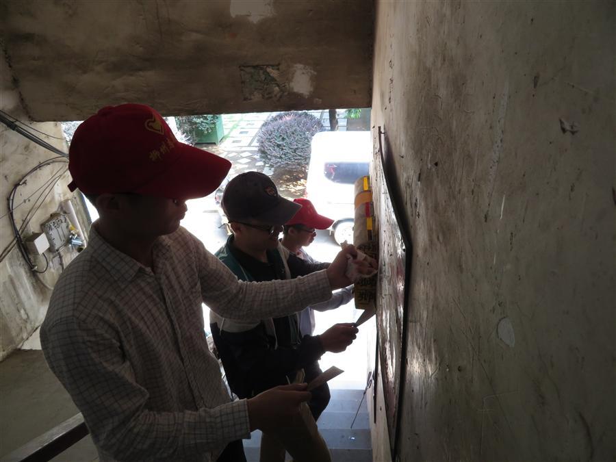 為結對社區(qū)居民營造整潔優(yōu)美、文明有序的居住環(huán)境是我們此次活動的主要內(nèi)容。上午9點,我司黨員志愿者來到北雀社區(qū),與社區(qū)工作人員一起帶上清潔工具前往居民樓清理小廣告。