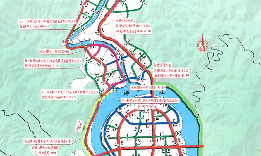 該項(xiàng)目位于柳州市三江侗族自治縣黃排片區(qū),結(jié)合規(guī)劃區(qū)發(fā)展的功能需求,圍繞著三江縣新三江中學(xué)學(xué)校地塊,規(guī)劃形成“一帶、一環(huán)、四心、五軸、七片”的城市結(jié)構(gòu)體系與“山、水、城、田、人”相融的組團(tuán)城市格局?!耙粠А敝缸詵|向西貫穿城區(qū)的潯江風(fēng)情帶,連接縣城多個(gè)片區(qū);“一環(huán)”是由潯江大道-侗鄉(xiāng)大道-河西老城西環(huán)線-宜陽(yáng)大道構(gòu)成的城市環(huán)線;“四心”分別是指潯江半島行政文體中心、河?xùn)|侗鄉(xiāng)民族文化中心、大洲島旅游活動(dòng)中心和火車(chē)南站客運(yùn)樞紐中心;“五軸”分別是指連接到城市環(huán)線的桂三高速公路連接線、209 國(guó)道周坪段、321 國(guó)道周坪段、龍吉大道和三柳高速公路程村連接線;“七片”則分別是指黃排片區(qū)、河西老城片區(qū)、河?xùn)|新城片區(qū)(含潯江半島)、周坪片區(qū)、大洲島片區(qū)、龍吉片區(qū)和火車(chē)南站片區(qū)。
