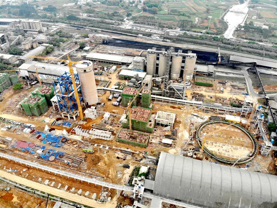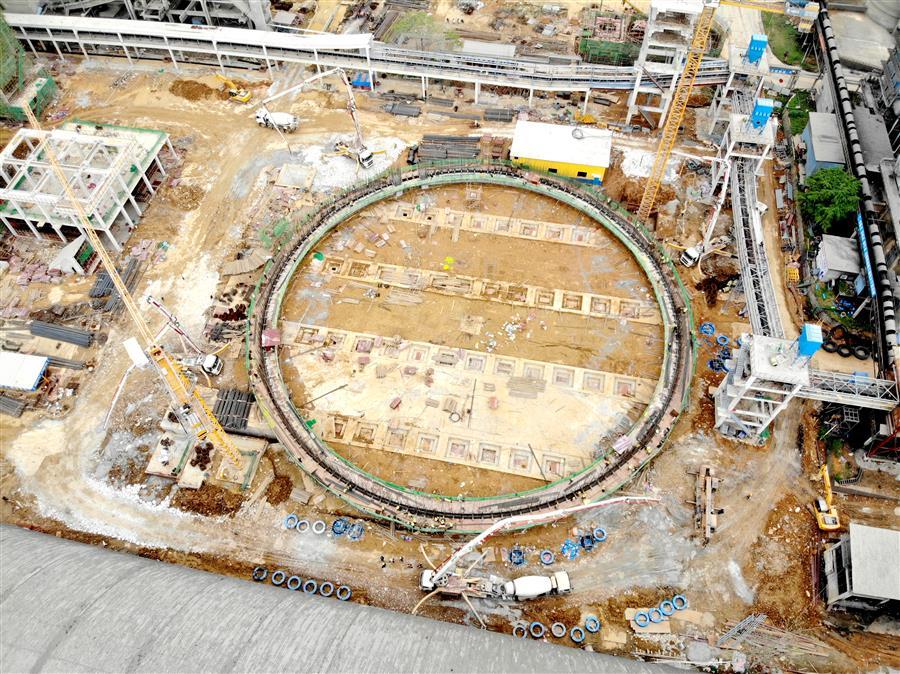 “開(kāi)始澆筑!”3月15日下午2點(diǎn)40分,隨著魚(yú)峰水泥技改項(xiàng)目總負(fù)責(zé)人的一聲令下,4臺(tái)混凝土泵車(chē)和混凝土攪拌車(chē)準(zhǔn)時(shí)就位,4臺(tái)天泵同時(shí)啟動(dòng)澆筑。這標(biāo)志著項(xiàng)目熟料庫(kù)的筒體滑膜施工正式啟動(dòng),并以每小時(shí)10厘米的速度向上滑升。項(xiàng)目部開(kāi)足馬力、鉚足干勁,迅速掀起“奮戰(zhàn)一季度”新一輪項(xiàng)目建設(shè)高潮。