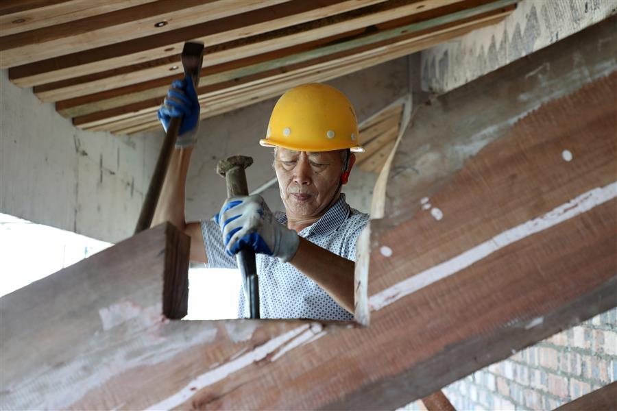 連日來(lái),在該項(xiàng)目湖心閣斗栱安裝現(xiàn)場(chǎng),每天有20多名經(jīng)驗(yàn)豐富的木工師傅在認(rèn)真進(jìn)行斗栱安裝作業(yè)。為保證項(xiàng)目質(zhì)量,解決項(xiàng)目斗栱安裝難題,加快安裝速度,項(xiàng)目部結(jié)合實(shí)際,通過(guò)多次試驗(yàn)和優(yōu)化設(shè)計(jì),確保柱子能承受斗栱重量,采用正裝方式進(jìn)行安裝,保證了安裝速度和安裝質(zhì)量。面對(duì)項(xiàng)目選用的木制斗栱材料密度大、重量重、安裝作業(yè)工作面窄等困難,木工師傅結(jié)合自身多年的木工經(jīng)驗(yàn),克服現(xiàn)場(chǎng)施工遇到的困難,相互配合,目前已完成斗栱安裝工作量的三分之一。