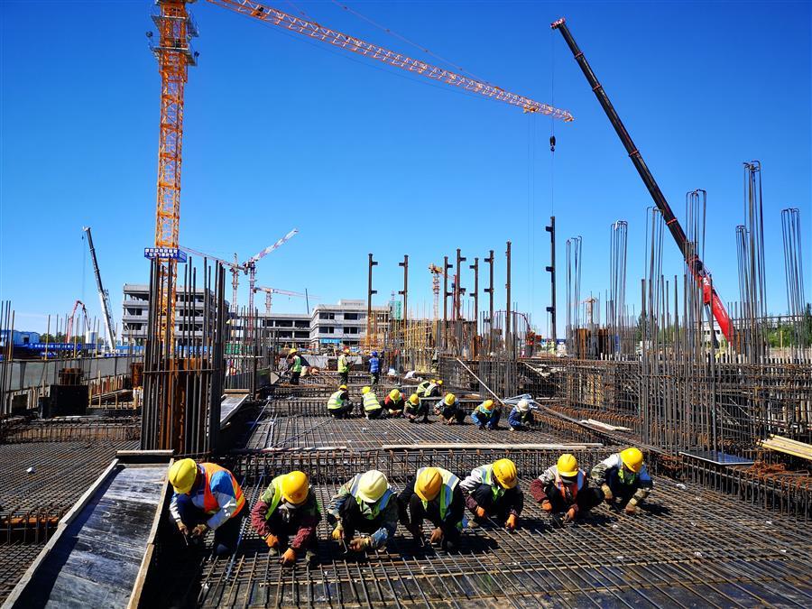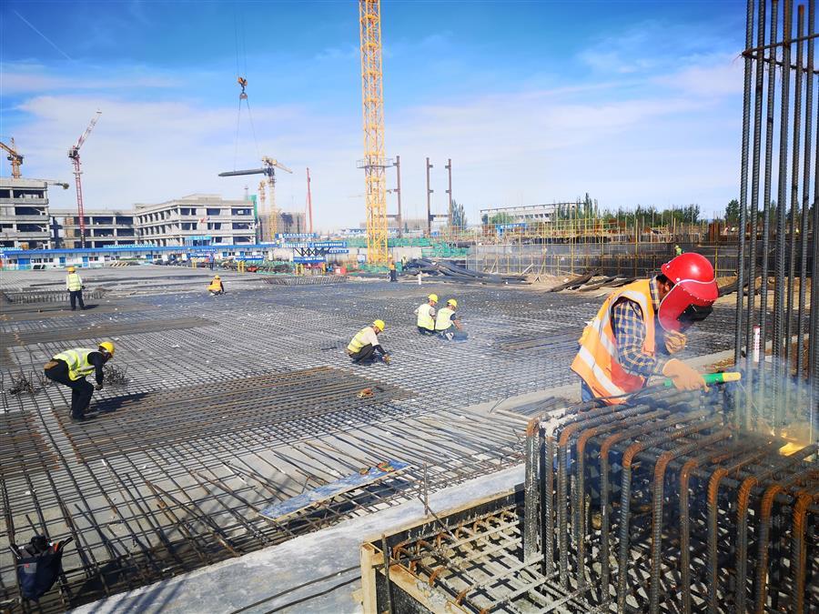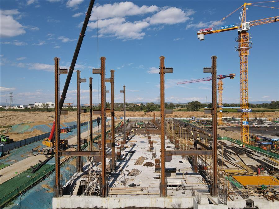 目前,項(xiàng)目正在進(jìn)行主體施工,施工現(xiàn)場(chǎng)正緊張有序地進(jìn)行著模板安裝、鋼筋綁扎、水電管線預(yù)埋、鋼結(jié)構(gòu)吊裝等工作。