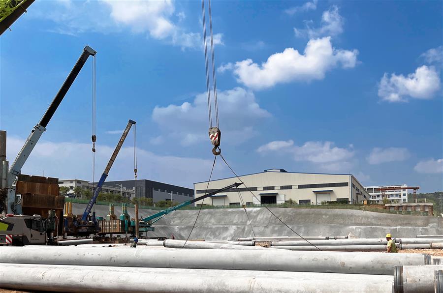 截至目前,項目已完成土方開挖量4萬立方米,完成基坑安全防護、試樁靜載試驗以及項目東側(cè)人員通道水溝回填等工作,完成產(chǎn)值近5000萬元。