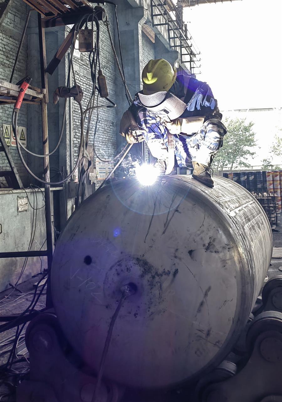 因節(jié)前承接的廣西柳鋼環(huán)保公司鋼渣廠1#廠房氣窗及3-11#柱屋面鋼結(jié)構(gòu)與彩瓦更換工程的鋼結(jié)構(gòu)預(yù)制加工、東莞市鵬錦機(jī)械科技有限公司15臺(tái)壓力容器制作需要在春節(jié)后交貨,壓力容器制造廠生產(chǎn)車間的施工人員、管理人員在大年初四就開始進(jìn)入了緊張繁忙的工作狀態(tài)。焊接、打磨相互銜接,作業(yè)有序,全力推進(jìn)設(shè)備趕制工作,現(xiàn)場(chǎng)好不熱鬧。工人們表示,能高質(zhì)量、高效率完成好制作任務(wù),也是一種快樂。