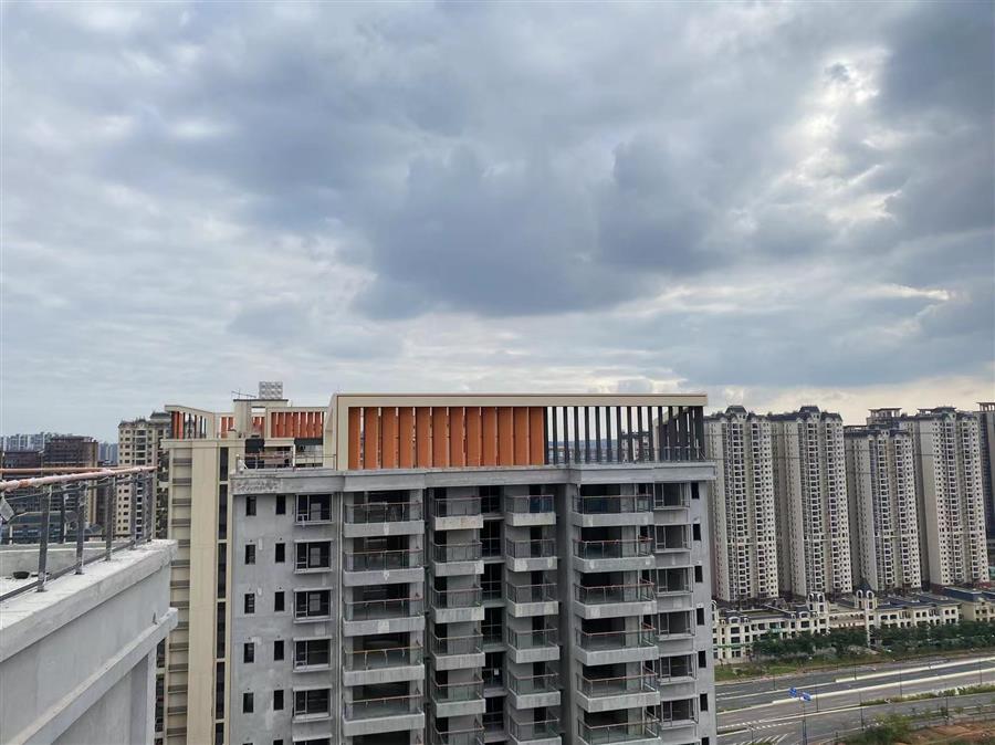 北投時代(二期)1#、2#、3#、5#、6#樓、北側(cè)大門及地下室工程項目總建筑面積為12.5萬㎡,地下2層,最大建筑高度為97.6m。目前,鋁合金門窗、陽臺欄桿安裝已完成工程量的80%,砌體工程、室內(nèi)抹灰、頂棚膩子、屋面構架涂料已完成,5#、6#樓標準層住戶交付樣板已完成。
