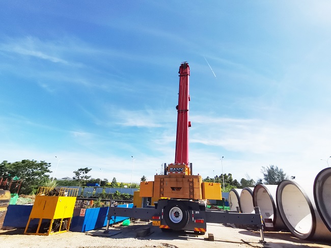 7月13日,冶建公司第三分公司承建的海口市觀瀾湖北區(qū)區(qū)外排水工程(PG3 線)施工現(xiàn)場,一臺長6米、外徑3.6米,重95噸 的超徑巖石頂管掘進機在起重機的牽引下精準進入到始發(fā)井的指定位置,標志著項目建設邁入更為高效、有序的軌道。