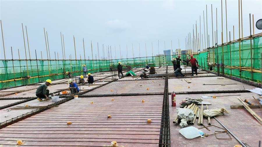 中秋將至,天氣依然炎熱。冶建公司桂海分公司承建的中國(guó)移動(dòng)廣西分公司南寧武鳴區(qū)分公司生產(chǎn)調(diào)度用房工程項(xiàng)目施工現(xiàn)場(chǎng)一派熱火朝天的景象,建設(shè)者們各司其職,切割鋼筋、搬運(yùn)材料、綁扎樓面鋼筋等,全力沖刺工程建設(shè)節(jié)點(diǎn)。