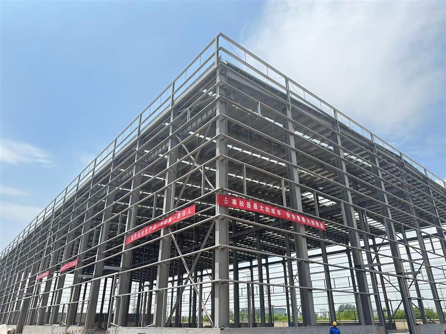 淮北高新區(qū)高新技術(shù)產(chǎn)業(yè)園及其配套設(shè)施工程(一期)項(xiàng)目用地面積約80.25畝,共建設(shè)5棟廠房及變配電房、消防泵房、門衛(wèi)室,總建筑面積約為3.31萬平方米,容積率為1.37。目前,項(xiàng)目5棟廠房的鋼結(jié)構(gòu)主體施工已基本完成,正在進(jìn)行圍護(hù)結(jié)構(gòu)和室外配套工程施工。
