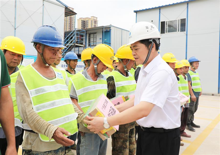 7月27日、28日,冶建公司總經(jīng)理、黨委副書記蒙勝益先后到深圳分公司承建的羅城硅晶新材料研發(fā)開發(fā)制造一體化項目(一期),第四分公司承建的柳州市河表片區(qū)標準廠房(一期)項目,開展“送清涼”慰問活動,為堅守在項目一線的建設者送去公司的關懷和防暑降溫物資。