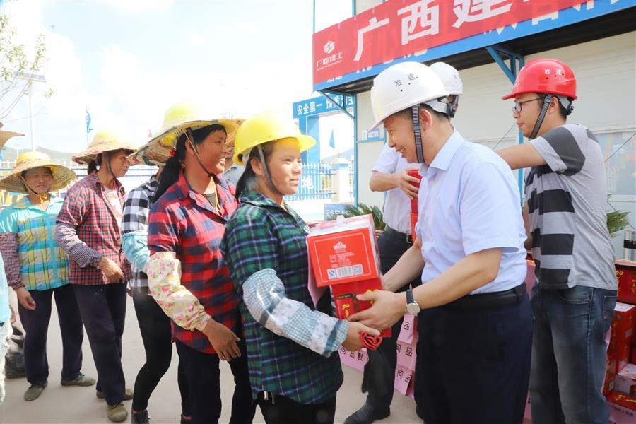 “送清涼啦!”在柳州市柳東新區(qū)竹爾屯棚戶區(qū)改造工程現(xiàn)場,一陣陣興高采烈的歡呼響徹項目部。7月4日下午,集團公司黨委委員、副總經(jīng)理侯立林,市場經(jīng)營部部長駱春燕在高溫酷暑中為施工現(xiàn)場一線職工和勞務工送來“清涼”,公司黨委書記、董事長歐志永,黨委副書記、紀委書記、工會主席賴海標參加慰問活動。