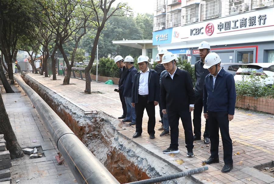 12月4日,冶建公司董事長、黨委書記覃振華率隊到公司承建的柳州城市更新工程(老舊市政燃?xì)夤艿栏赂脑祉椖浚┒綄?dǎo)工作,公司副總經(jīng)理、總工程師廖立波,副總經(jīng)理何勇,代安全總監(jiān)韋克雪參加。