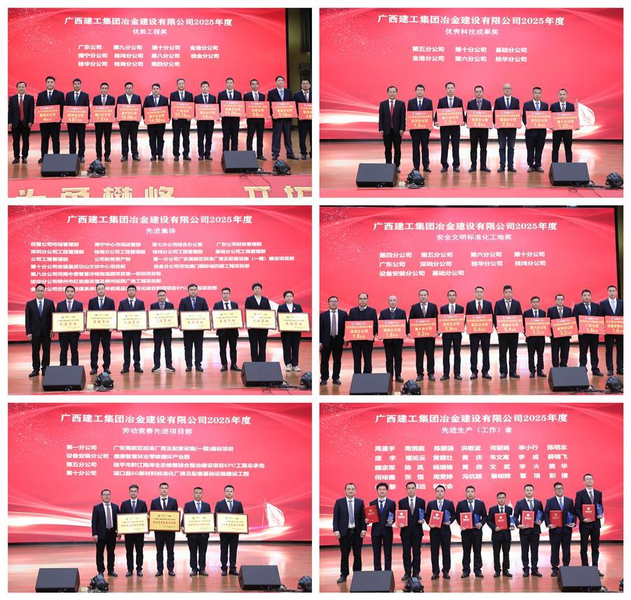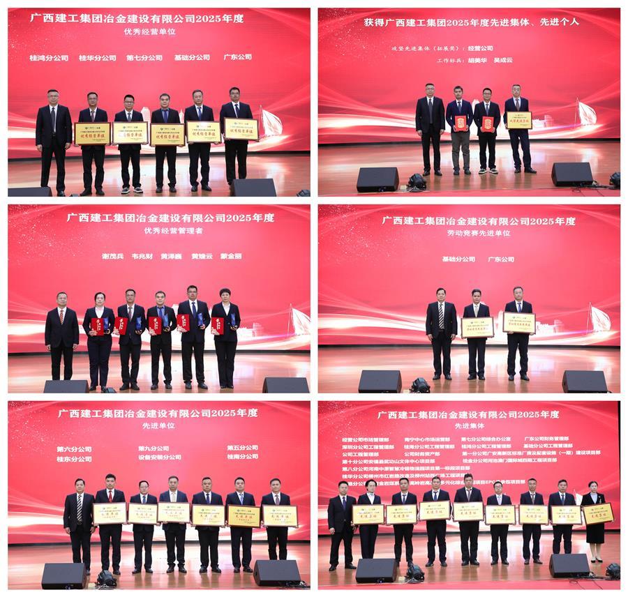 會上表彰了公司2025年度先進(jìn)單位、集體及個人,勞動競賽先進(jìn)單位、項目部及個人,優(yōu)質(zhì)工程、優(yōu)秀科技成果、安全文明標(biāo)準(zhǔn)化工地等。桂鴻分公司、桂華分公司、第七分公司、第一分公司等5家單位作經(jīng)驗交流發(fā)言。