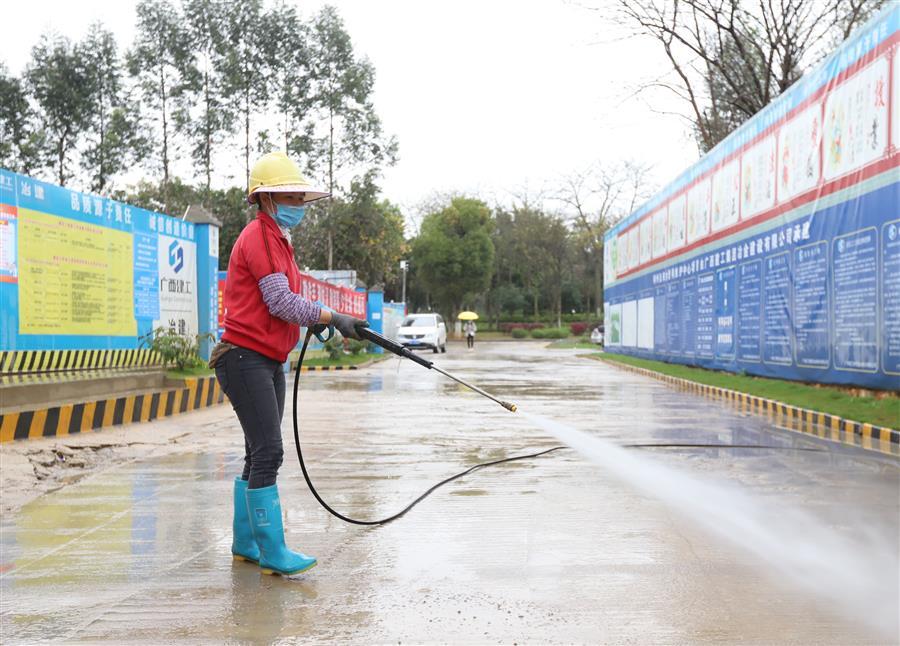 進項目現場前測量體溫、進項目現場后佩戴防護物品、項目每天殺毒消毒.....3月2日,在柳州市自來水管網維護中心項目施工現場,工人在做好防護措施的前提下,有序施工。