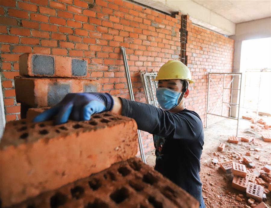 工人正在砌磚作業(yè)