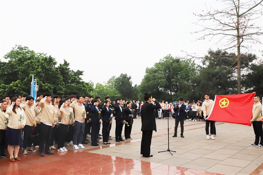 默哀后,全體團員青年右手舉拳,面對鮮紅的團旗和巍峨的烈士紀念碑重溫入團誓詞,以青春之聲向烈士莊重承諾,繼承先烈遺志,立足本職,用青春力量助推高質量發(fā)展。