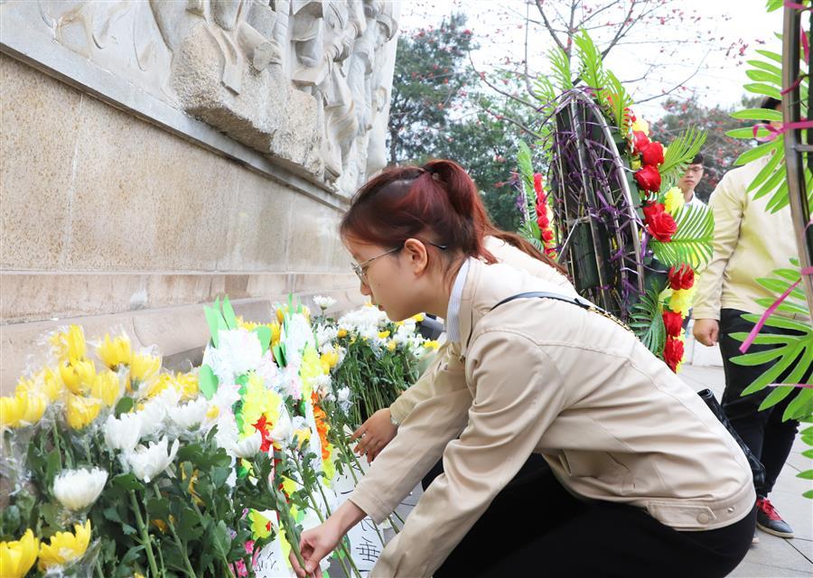 柳州烈士陵園里寧靜肅穆,團員青年懷著崇敬的心情邁著堅定步伐,沿著陵園臺階緩緩行進至雄偉莊嚴的烈士紀念碑前,向革命烈士低頭默哀,緬懷先烈的豐功偉績。