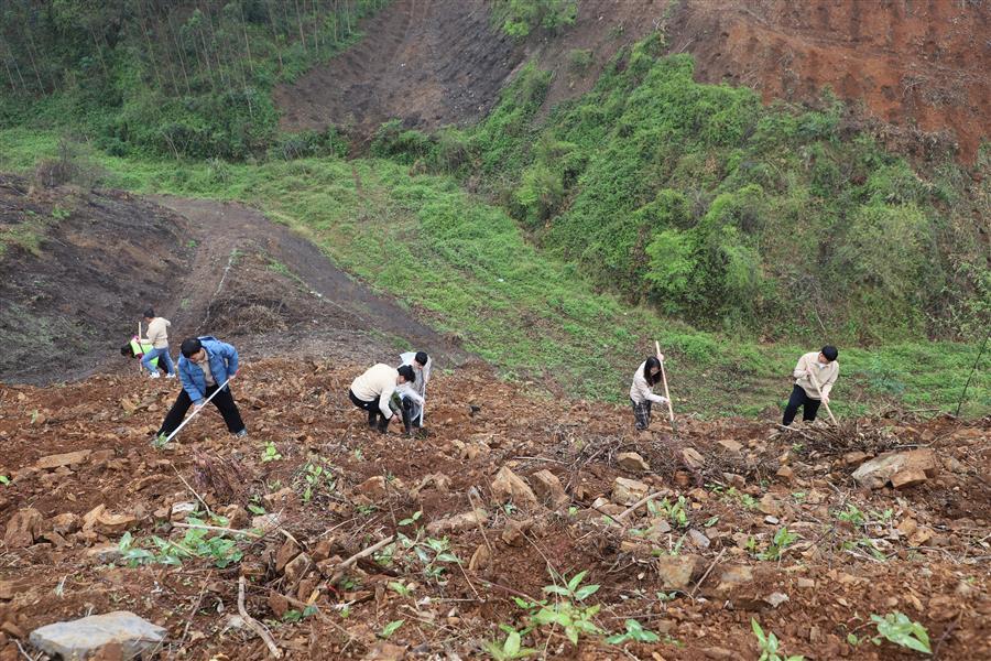 活動(dòng)現(xiàn)場,青年志愿者分組分片區(qū)開展植樹活動(dòng)。各小組團(tuán)員青年分工協(xié)作、默契配合,鏟土挖坑、立苗填土,個(gè)個(gè)熱情高漲、干勁十足,活動(dòng)現(xiàn)場氣氛熱烈。經(jīng)過大家熱火朝天的忙碌,一排排新種樹苗有序“落根”,山坡上煥發(fā)出盎然生機(jī)。