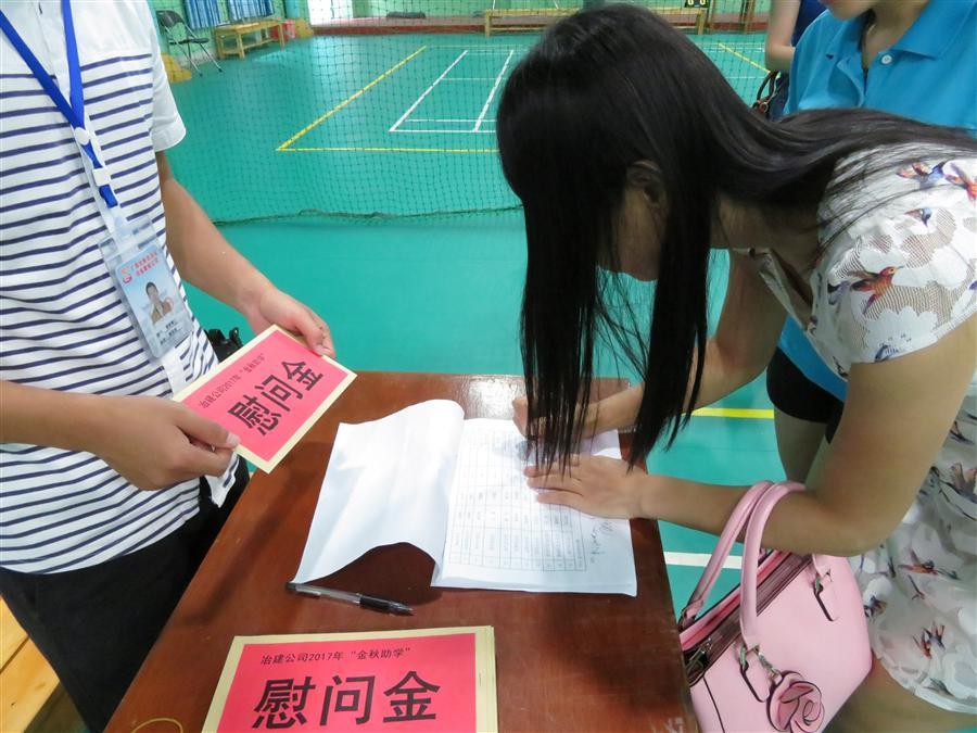 “恭喜恭喜,祝您的孩子學(xué)業(yè)有成!”9月8日下午,我司工會在公司體育館舉行“金秋助學(xué)”慰問金發(fā)放儀式。