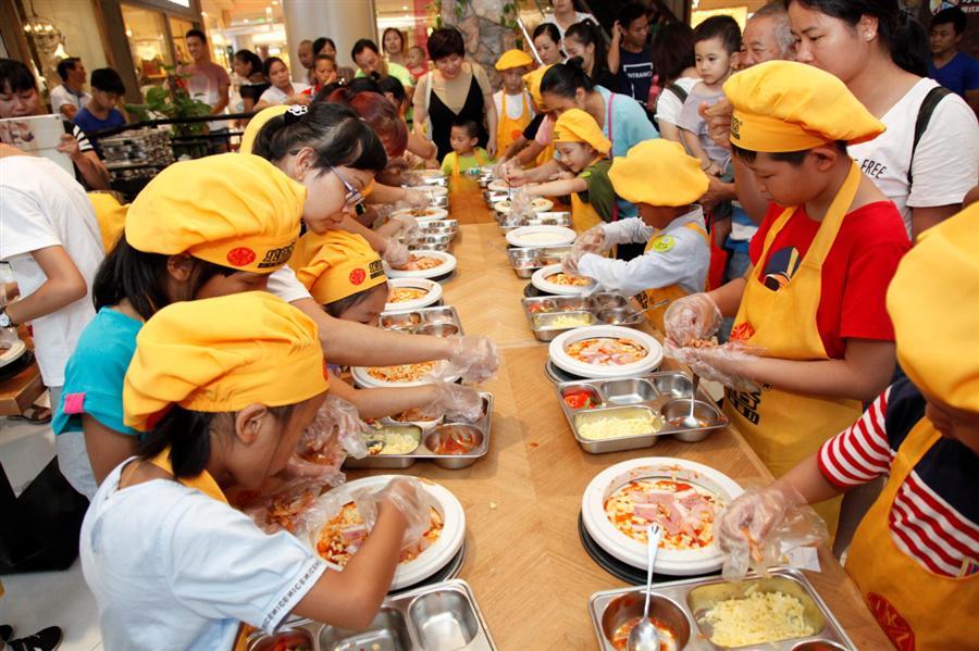 圖1:糕點師在為孩子們展示披薩制作過程