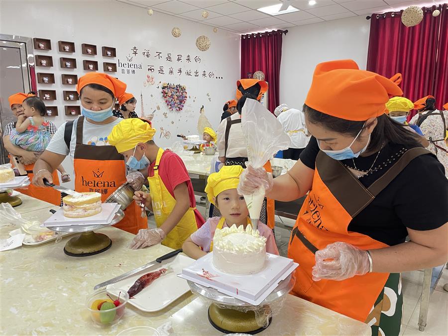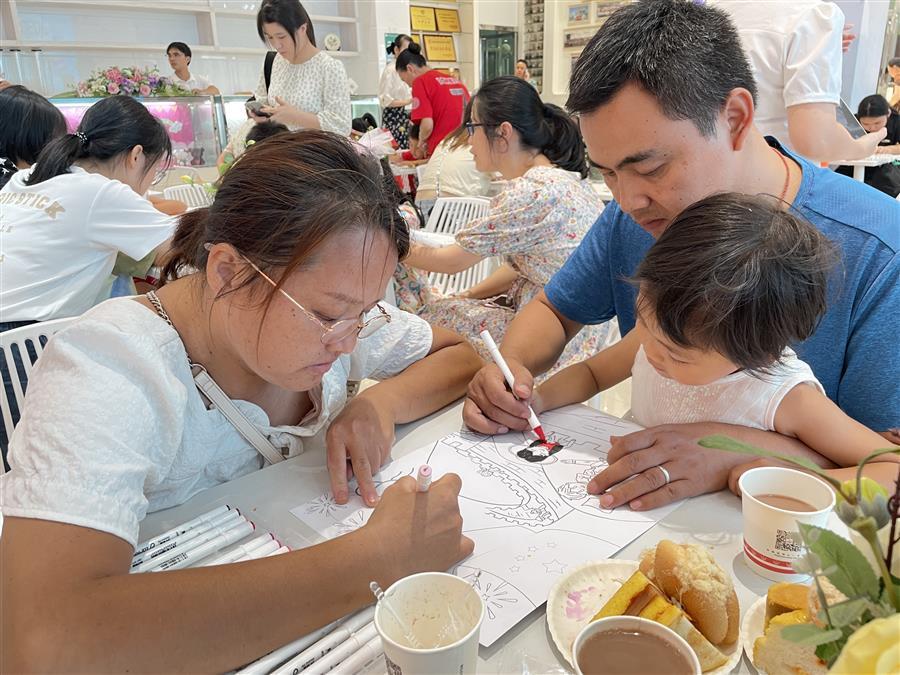 活動現(xiàn)場,家長和孩子們聆聽了紅色詩歌朗誦,現(xiàn)場共同繪制了主題畫作。并在講解員的帶領下參觀了中央工廠,了解了糕點生產過程。參觀后,大家一起觀看專業(yè)糕點師的現(xiàn)場教學并體驗了蛋糕制作。一個小時后,一個個造型別致、想象奇特、富有童趣的親子蛋糕新鮮出爐。家長與小朋友們手捧自己制作的蛋糕拍照,現(xiàn)場氛圍其樂融融。